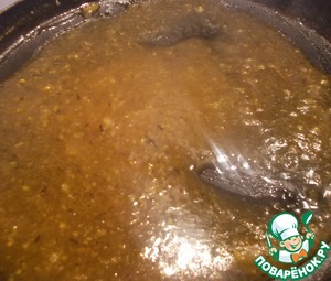 Добавляем сахар и соль по вкусу, пробуем. потому-что есть мандарины кислые, есть сладкие и у каждого свой вкус. Вот такая конситенция сиропа должна получится в конце. Затем протереть с помощью ложки и сита наш соус до однородности, но можно подавать и так.