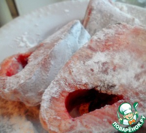 Горбушу обвалять в крахмале.