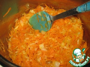 Готовлю зажарку: морковь и лук обжариваю на программе "Жарка" 7-8 минут (на фото значительно больше, чем по 60 г, это впрок ;-) )