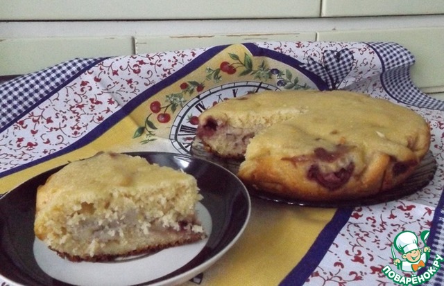 Заливаем фрукты оставшимся тестом. На мультиварке выставляем режим выпечка 60 минут. После окончания программы оставляем манник в чаше до полного остывания. Затем переворачиваем чашу на блюдо.