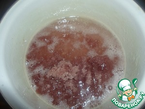 Снимаем с огня и сразу добавляем разбухший желатин, мешаем до полного растворения.