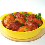 По истечении времени достаем форму и выливаем поверх картофеля и котлет соус (можете ложкой поливать каждый продукт, чтобы цвет был равномерным). Ставим форму обратно в духовку и запекаем при той же температуре ещё 20 минут.