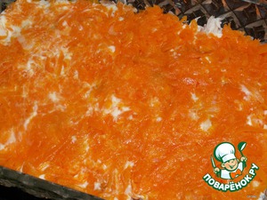 Яйца, картофель, морковь отварить, почистить и отдельно натереть на тeрке.
