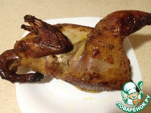 Все достаем курочку и немного охладив разрезаем на порции.