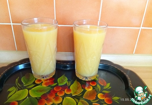 4)вылавливаем дольки фруктов или пропускаем через сито, кому как удобнее и выжимаем из долек сок
