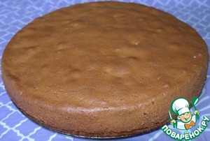 Разрезаем бисквит пополам и очень хорошо пропитываем коржи.