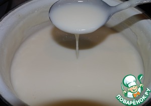 3. когда сахар растворился и молоко начинает закипать, постоянно помешивая, вливаем молочно-мучную смесь.