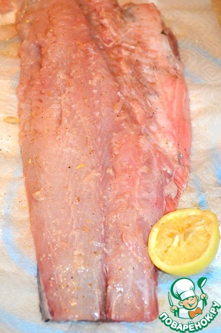 • Филе обмыть, обсушить и сбрызнуть лимонным соком, слегка присыпать любыми специями для рыбы.