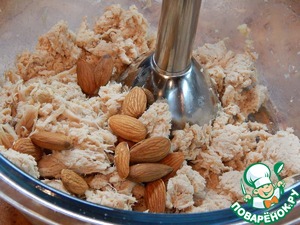 Добавить орехи и продолжить измельчать уже вместе с орехами.