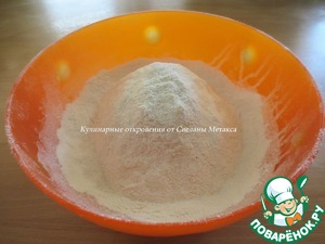 • Муку просеять в большую миску, добавить соль, перемешать.