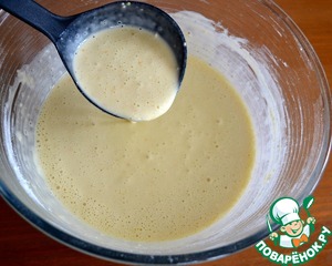 Для приготовления блинов в глубокую миску разбить яйца, добавить сахар, цедру апельсина и немного ликера. Взбить все энергично вручную или с помощью электрического миксера. Всыпать просеянную муку и в несколько этапов влить молоко. Как следует все перемешать. Тесто не должно быть слишком жидким, но легко стекать с ложки.