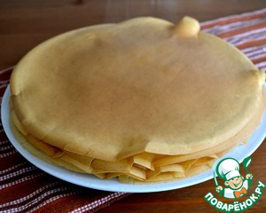 Готовые блины сложить в стопку. Их получается ровно 8-9 штук. Нам понадобится 8 блинов.