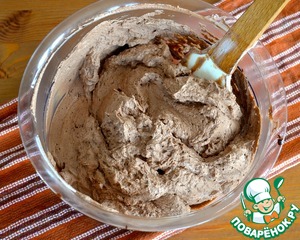 Взбить 375 г сливок до устойчивых пиков (не перебейте!). В остывший шоколадный ганаш добавить пару ложек взбитых сливок и перемешать.