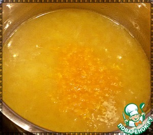 Затем добавить апельсиновый сок, цедру и варить (помешивая) около 3 минут.