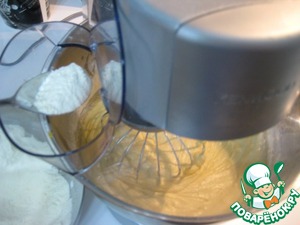 Просеять муку с разрыхлителем, добавляя муку в яичную смесь замесить тесто.