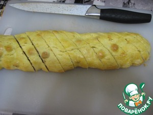 Нарезать острым ножом на кусочки толщиной 1,5 см.
