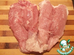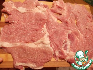 Вот такой кусочек мяса у меня. Можно взять чуть больше, или чуть меньше, не страшно. Нам нужно из этого куска сделать максимально широкое "полотно", в которое мы будем заворачивать начинку из омлета и овощей.