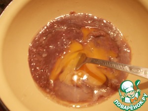 Приготовим печеночный омлет. Нужно помолоть печень с луковицей, посолить и поперчить и добавить яйцо. Хорошо взболтать вилкой, до однородности.