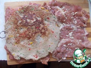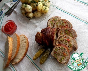 Рецепт «Мясной рулет с печеночно-овощным омлетом»: