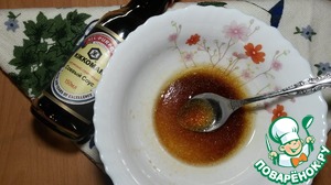 Готовим соус из оливкового масла и соевого соуса и поливаем салат.