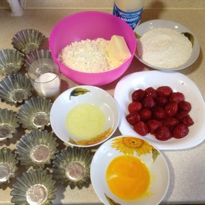Приготовим ингредиенты. Формы если они металические то тщательно смазать их маслом. Можно маргарином, спредом...