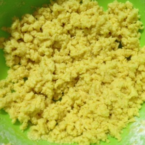 Примерно 2/3 муки можно перемешивать миксером. Получиться вот такая крошка.