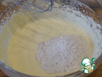 В готовую жидкую массу постепенно, в 3-4 приема, ввести смешанные сухие ингредиенты. Тесто взбить до однородной массы. |