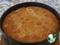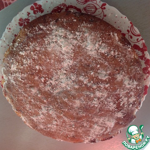 Готовый пирог остудить в форме, затем выложить на блюдо и посыпать сахарной пудрой.