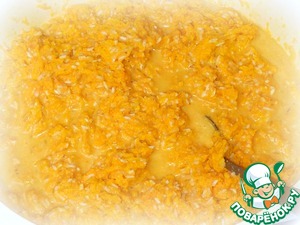 Натёртые овощи, тыкву и морковь переложила в миску. Положила рис.