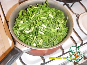 Этот обед очень вкусен также с жирными кусочками мяса (баранина, говядина), только мясо заранее надо отварить и положить уже чуть тушёную зелень. -