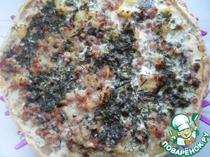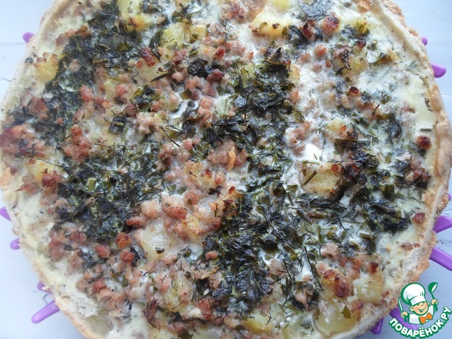Сытный и довольно простой в приготовлении пирог. Хороший перекус. Напоминает пиццу, только без сыра и помидоров. Но это лично мое мнение. А что на это скажете вы, уважаемые поварята?