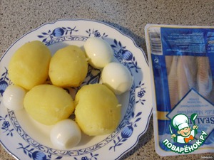 Отварить картофель в мундирах. Также отварить яйца, очистить лук. Булочку и кусочек тёмного хлеба замочить в молоке. В крайнем случае можно без булочки, но с ней вкуснее. Тёмный хлеб обязательно :)