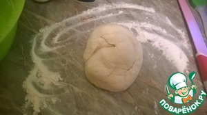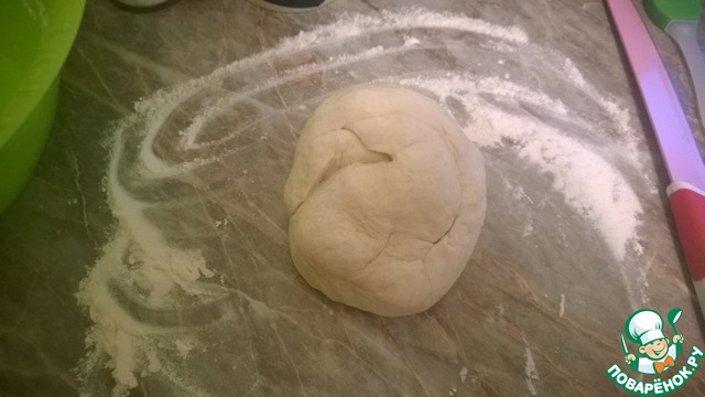 Когда тесто поднимется, припылите поверхность, на которой будете раскатывать основу, мукой (из-за того, что у меня мини-печь, пришлось делить тесто на 2 маленькие пиццы).