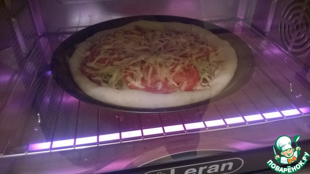 Разогрейте духовку до 220 градусов, поместите в нее будущую пиццу и выпекайте 15-20 минут.