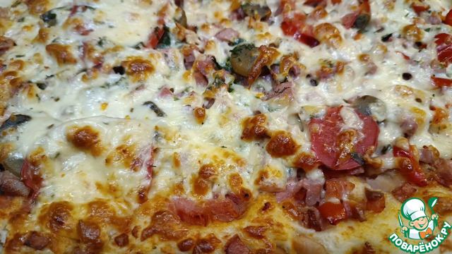 Пока писала рецепт, первая пицца была съедена, а вторая только допеклась.