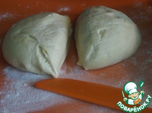 Подошедшее тесто разделить на две части, потому что у нас будет два пирога.