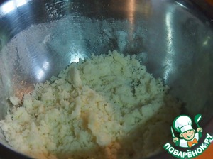 Пока пироги подходят, из муки, масла, сахарной пудры и ванильного сахара пальцами сделать крошку.