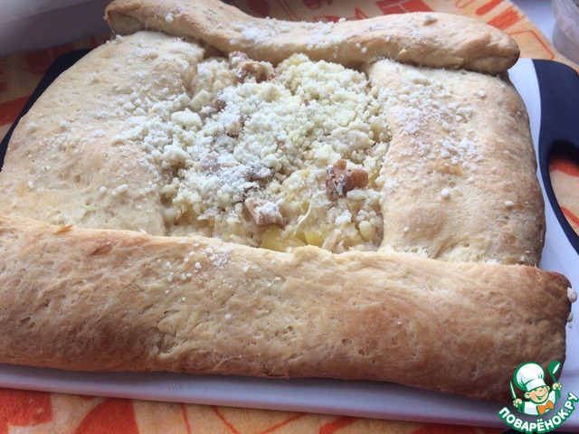 Печь пироги в разогретой духовке при температуре 200 градусов приблизительно 20 минут. Еще горячие посыпать по краям сахарной пудрой.