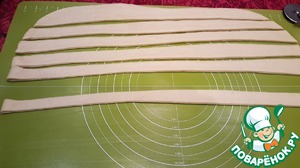 Раскатать вторую часть теста и разрезать ножом для пицы на полоски.