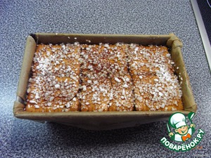 Сверху можно посыпать молотыми орехами, кокосовой стружкой или, как я, сахаром. И - в холодильник на 2 часа. Из формы вытащить, бумагу удалить, порезать на кусочки прим. 1-1,5 см. толщиной и наслаждаться!