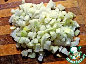 Пока делаем печёночный слой. Всё, как в предыдущем рецепте: лук измельчаем.