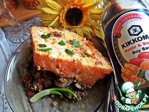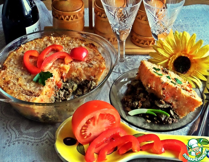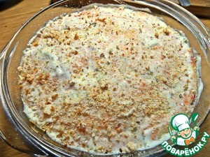 Смазываем верх сметаной или майонезом, ещё посыпаем сухарями для корочки.