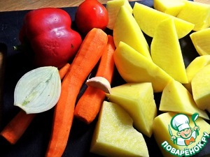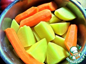 Картофель, морковь чистим, картошку делим для быстроты на доли.