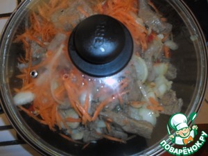 На разогретую с небольшим количеством масла сковороду выкладываем печень и тушим 5 минут на маленьком огне.