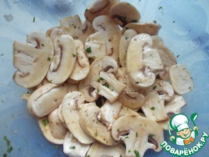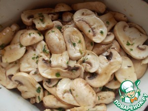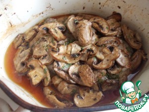 Остальной маринад отправить к грибам, которые мы предварительно порезали пластинками.