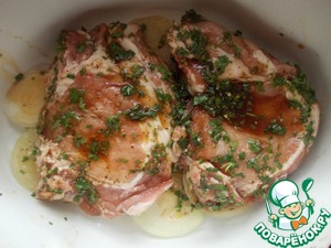 Затем мясо прямо с маринадом.