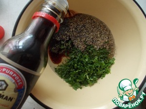 Вылить маринад к мясу, но пару ложек оставить. Перемешать и оставить на пол часика.
