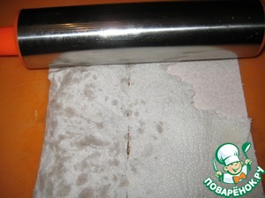 Орехи укладываю в полотенце и придавливаю, прокатываю скалкой