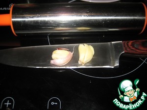 Зубчики чеснока просто придавливаю к доске плашмя широким ножом