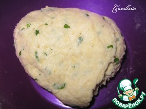 Смешать яйцо, сливки, тертый сыр, измельченный чеснок и петрушку, немного соли, муку. Перемешать до консистенции мягкого теста.